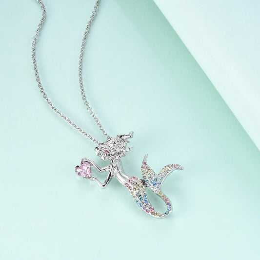 Fashion Mermaid Birthstone Necklace Jewelry White Gold Plated Austrian Crystal Pendant Gifts for Women